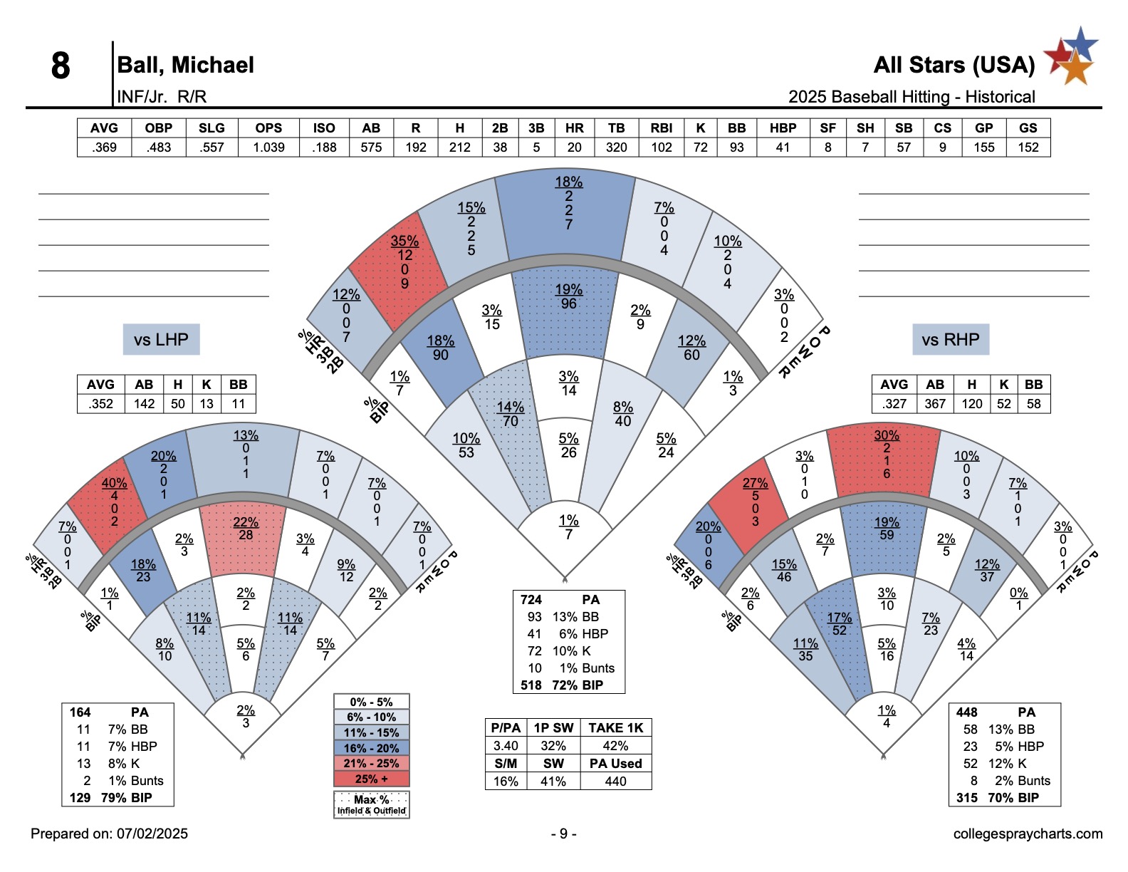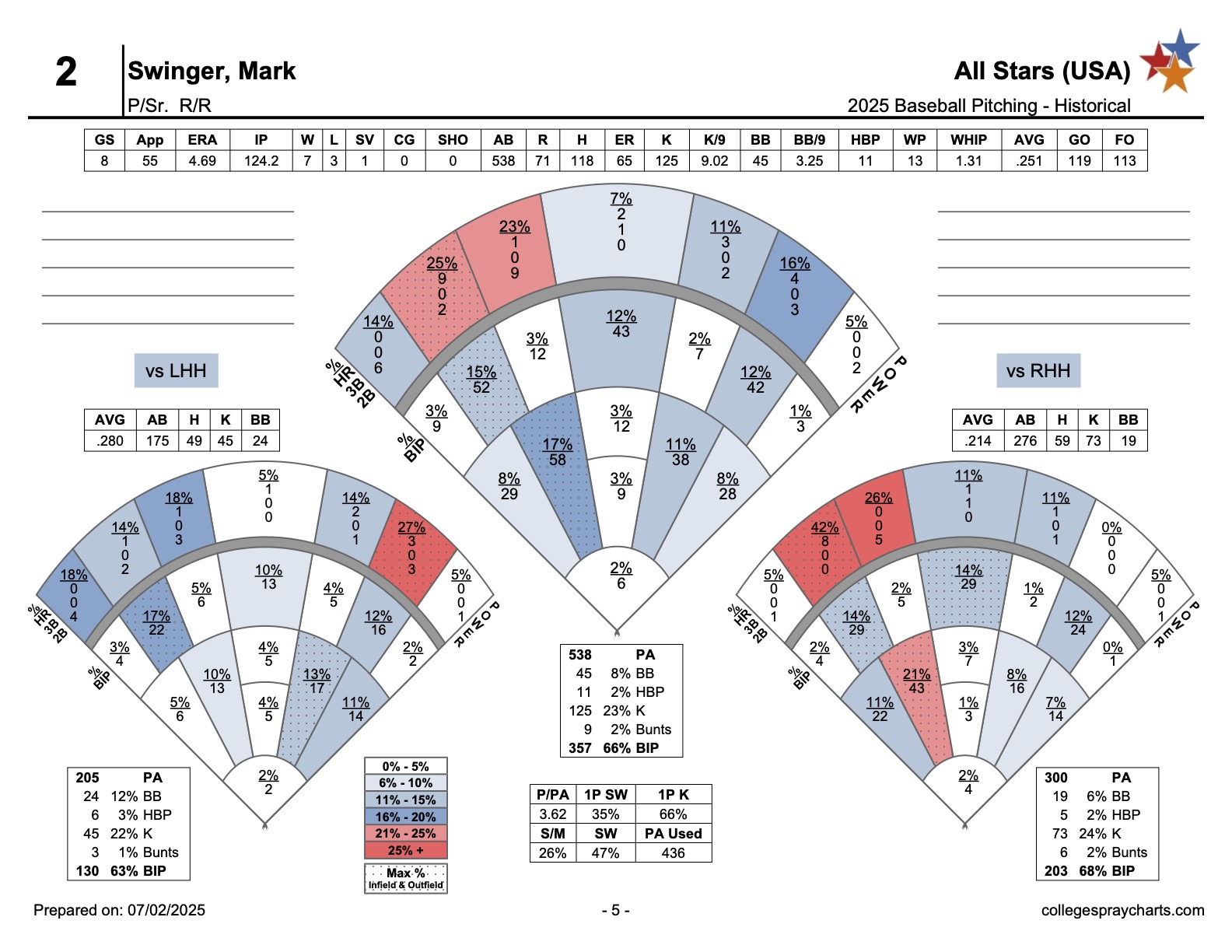 We collect and analyze play-by-play information for over 1,900 collegiate baseball and softball teams. Throughout the season, we publish these data insights as analytic visual charts. Now you can "know your opponent".